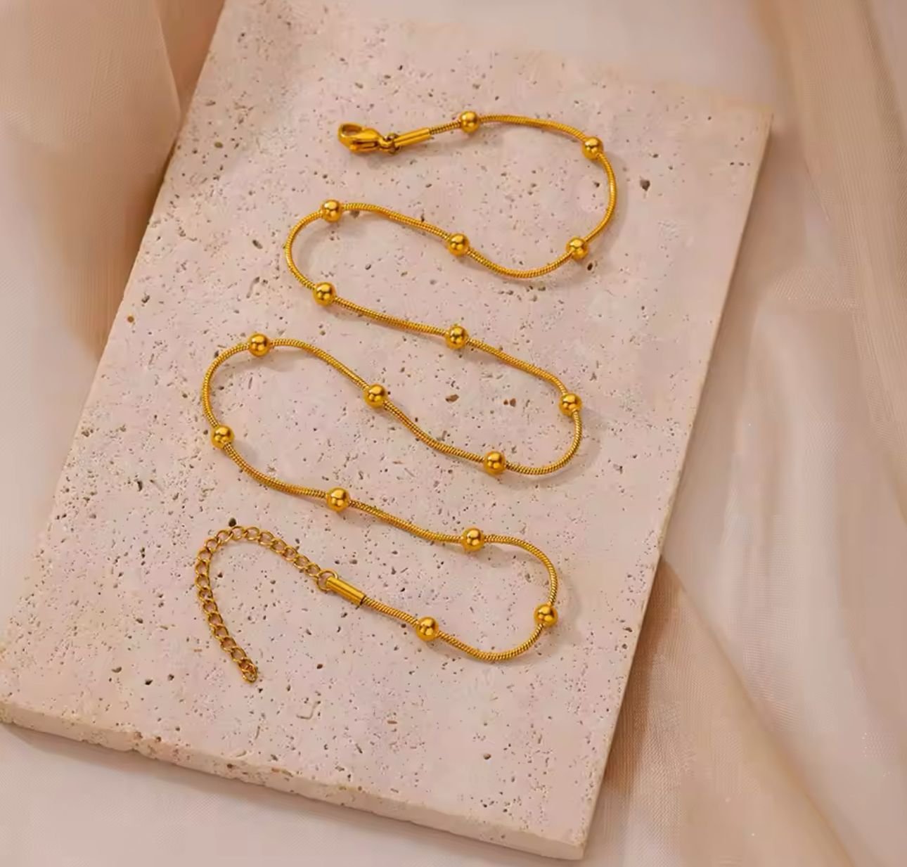 Simplicity meets sophistication with this delicate gold chain necklace, designed with minimal golden bead accents for a graceful everyday look. Lightweight, classy, and perfect for layering or wearing solo.