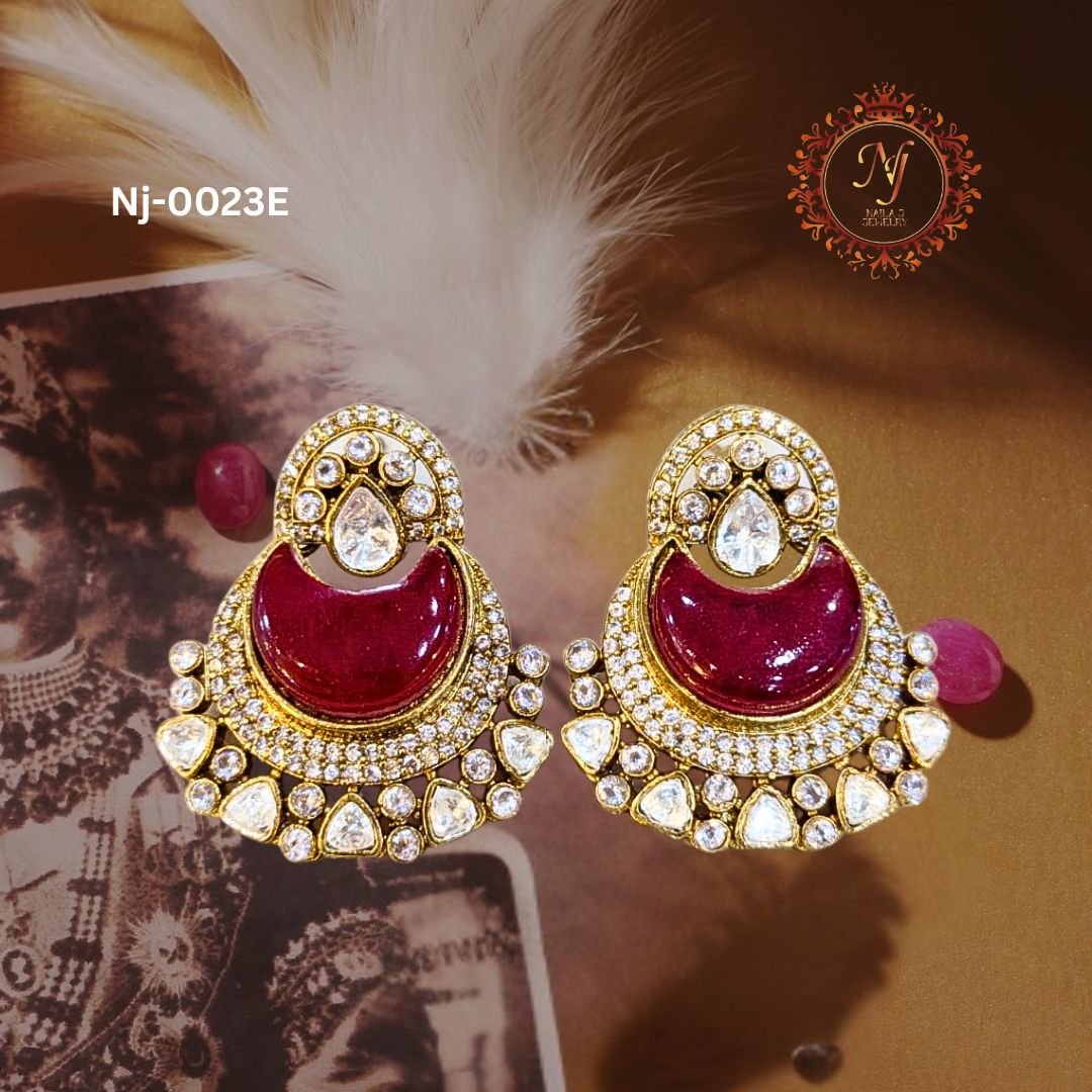 Make a royal statement with our handcrafted ruby red and kundan stone earrings.
