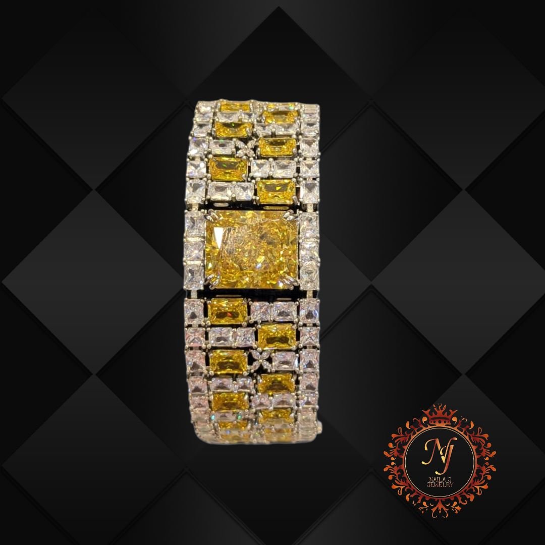 Silver based synthetic Yellow Diamond studded Bracelet